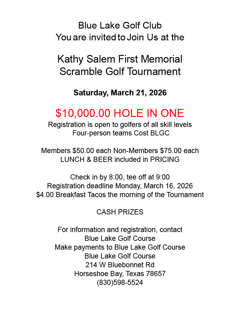 Contact Dee Ramsey at 281-687-4600, email to RSVP and make payment at deeblythe1185@gmail.com